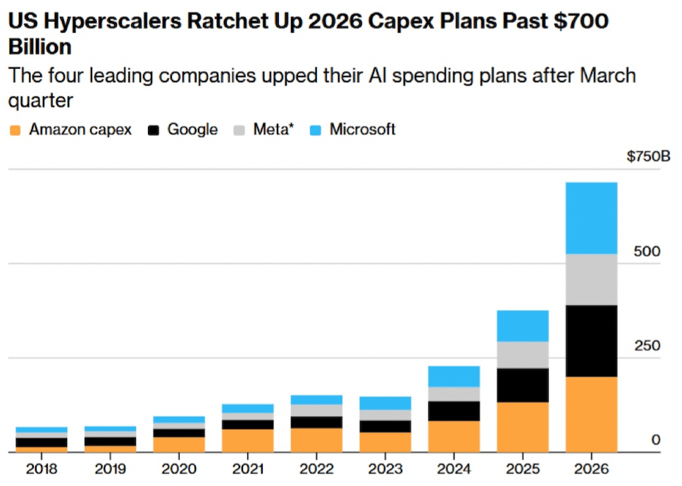 The hyperscalers - the companies building out AI infrastructure - are ramping capital expenditures at an unprecedented pace. Recent estimates show that total spending from this group is on track to reach $725 billion by 2026.